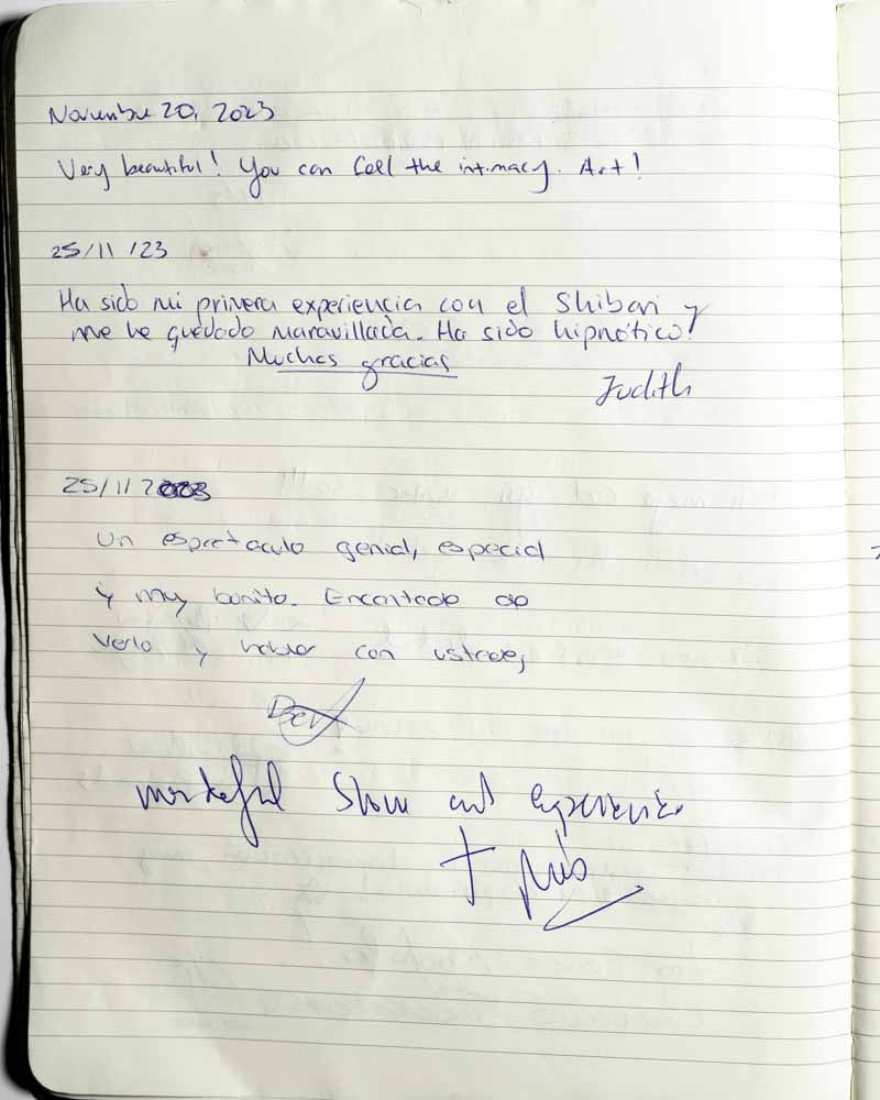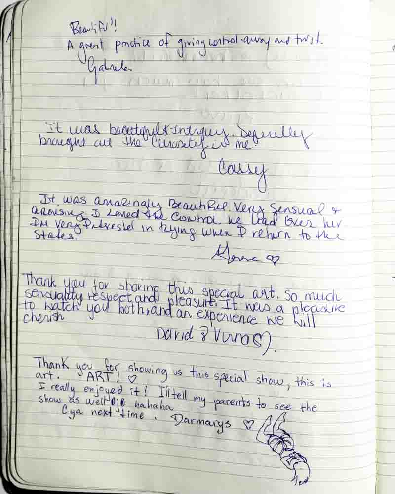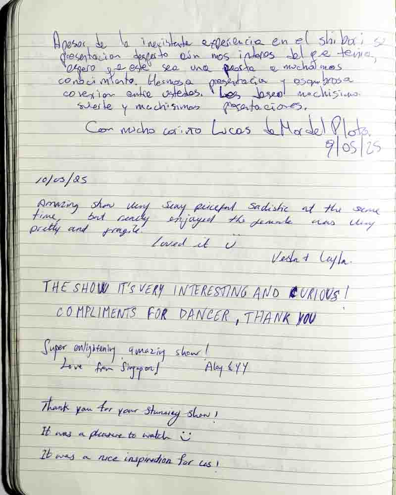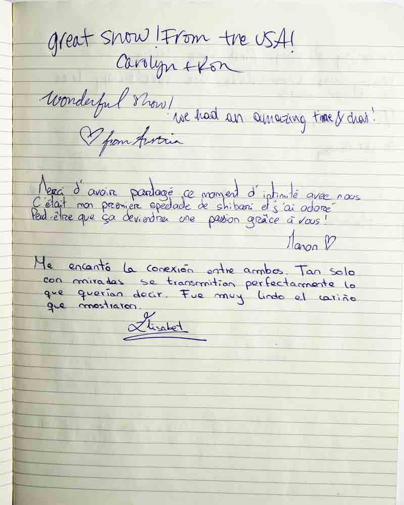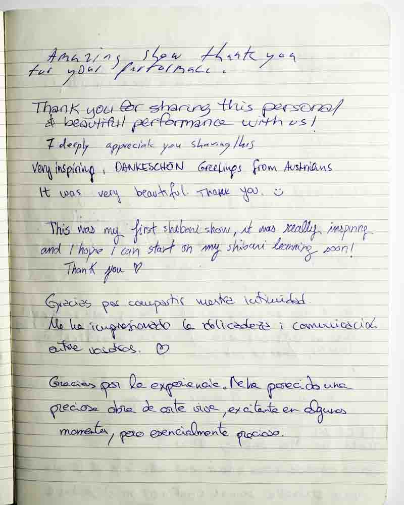 I came to the show because I was curious. I always had the impression that shibari was about domination and submission, but I realized it’s about letting go…of prejudice, of judgement, etc.