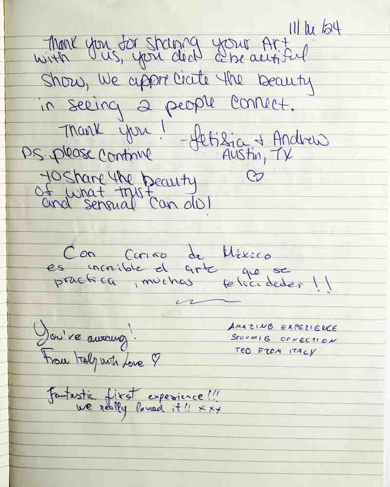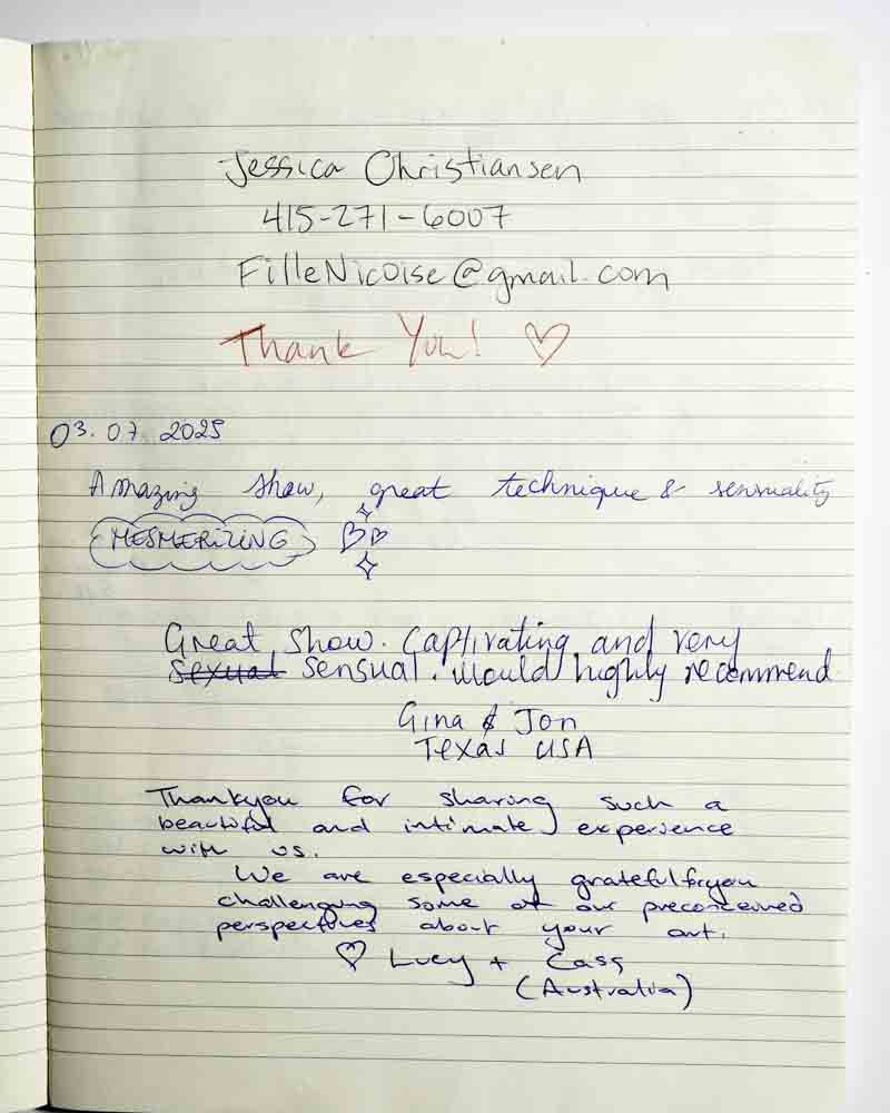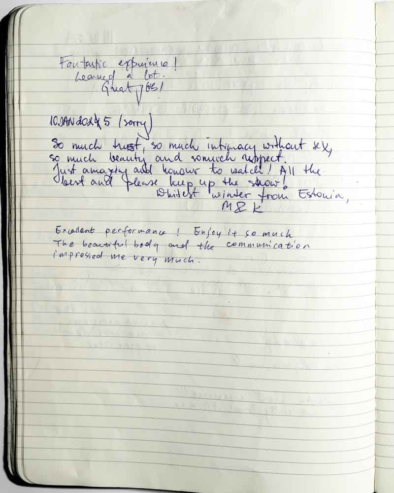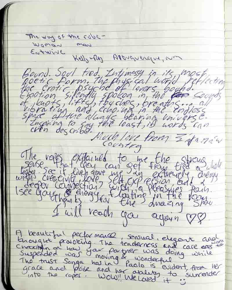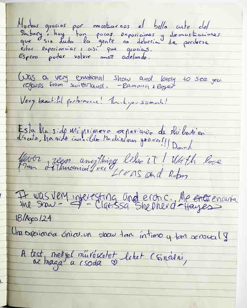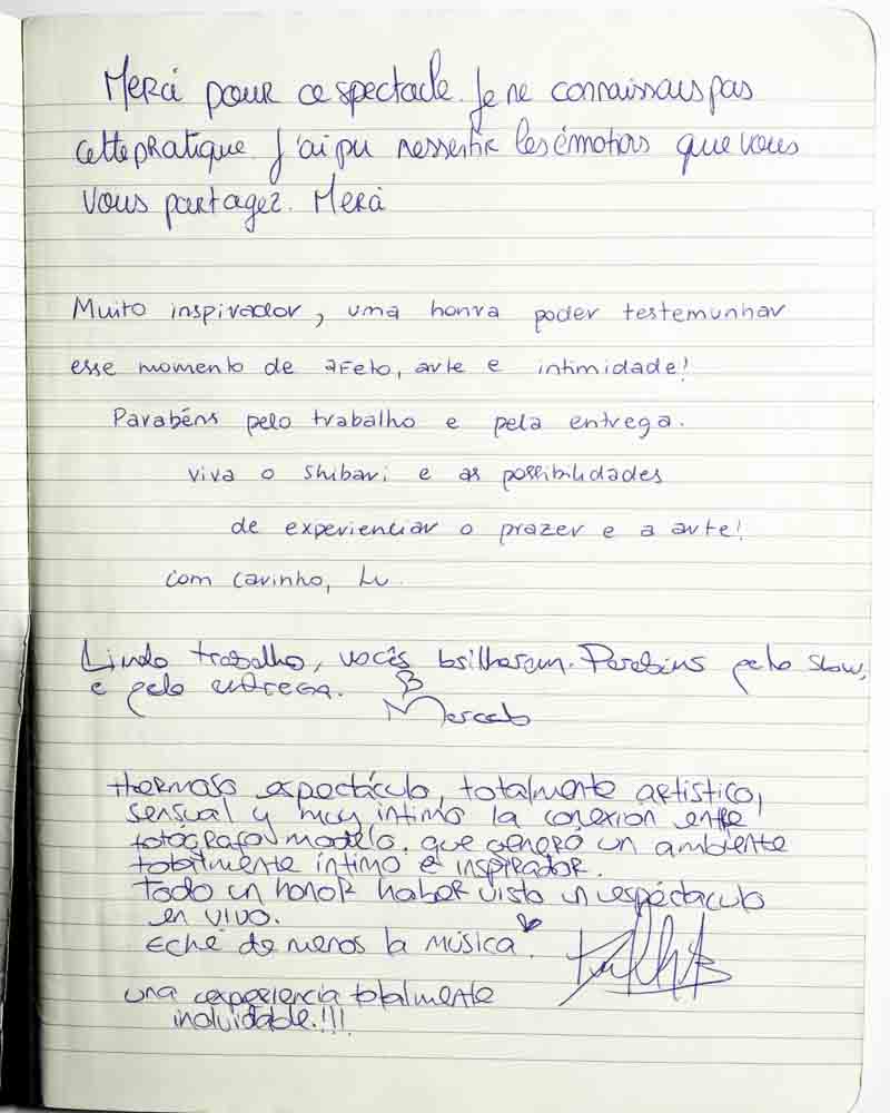 I came to the show because I was curious. I always had the impression that shibari was about domination and submission, but I realized it’s about letting go…of prejudice, of judgement, etc.