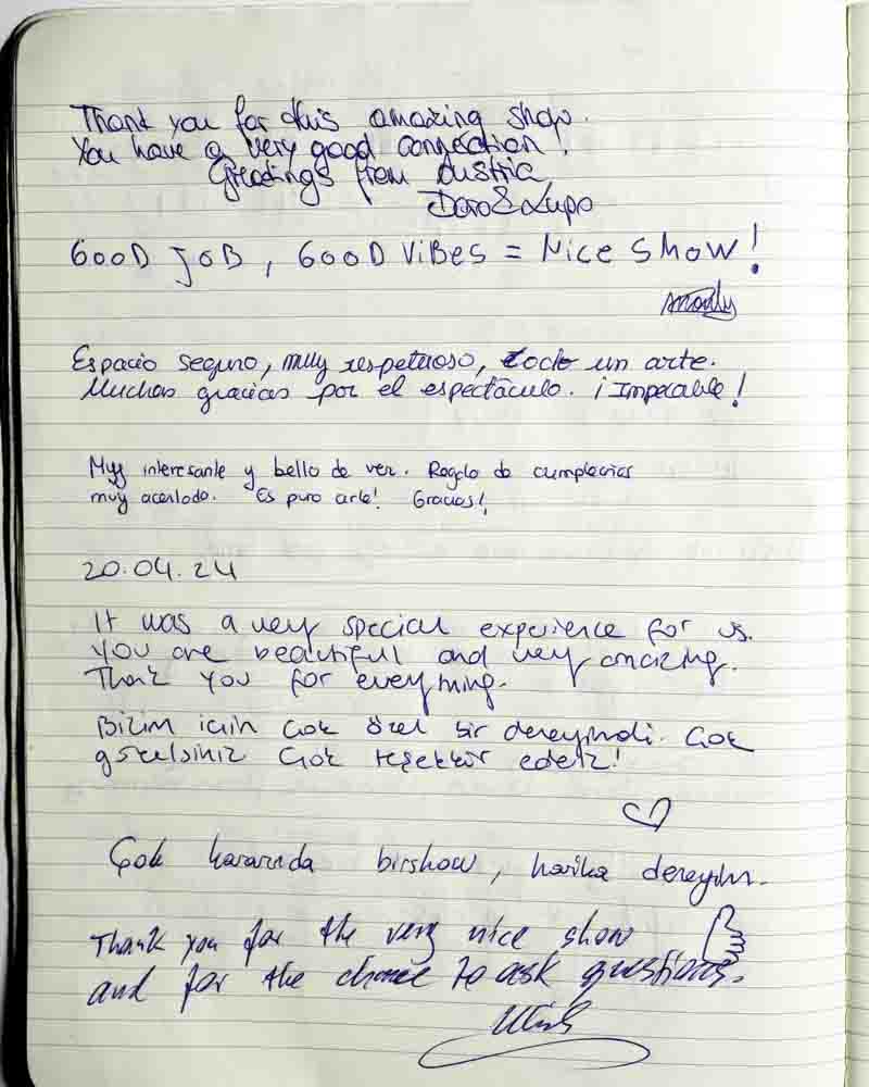 Voici quelques-uns des commentaires laissés par la public sur le livre d’or au Musée Érotique de Barcelone.